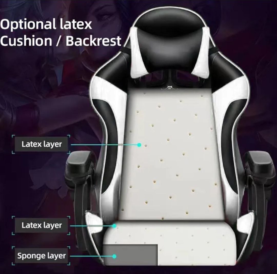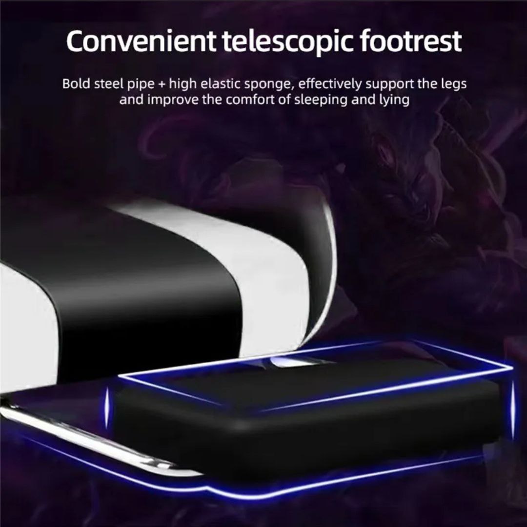 This is a versatile gaming chair, you can sit or lie down for a comfortable gaming experience. The reclining space can be tilted back 145 degrees This is a multifunctional gaming chair with a headrest that helps protect the cervical spine. The armrests can be extended so you can sit or lie down for a comfortable gaming experience.
