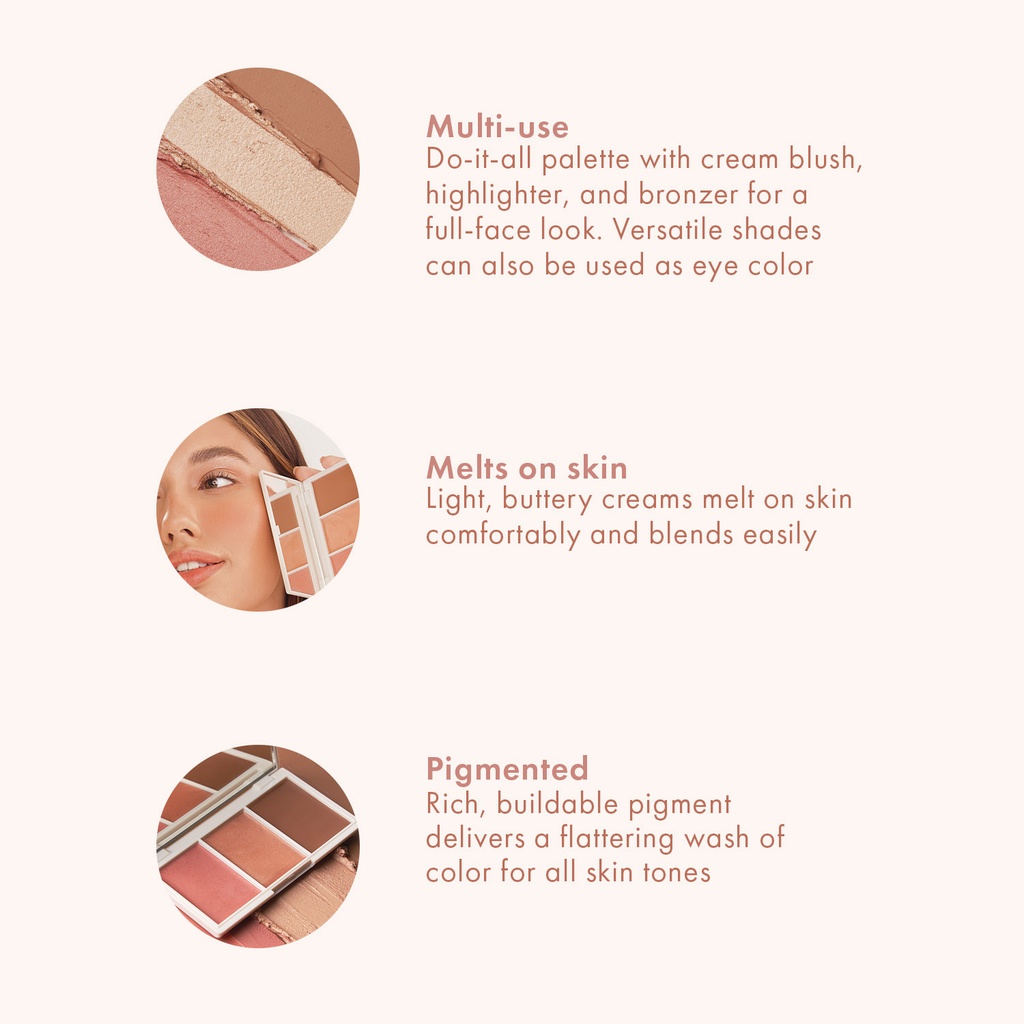 Do-it-all palette with cream blush, highlighter, and bronzer for a full-face look