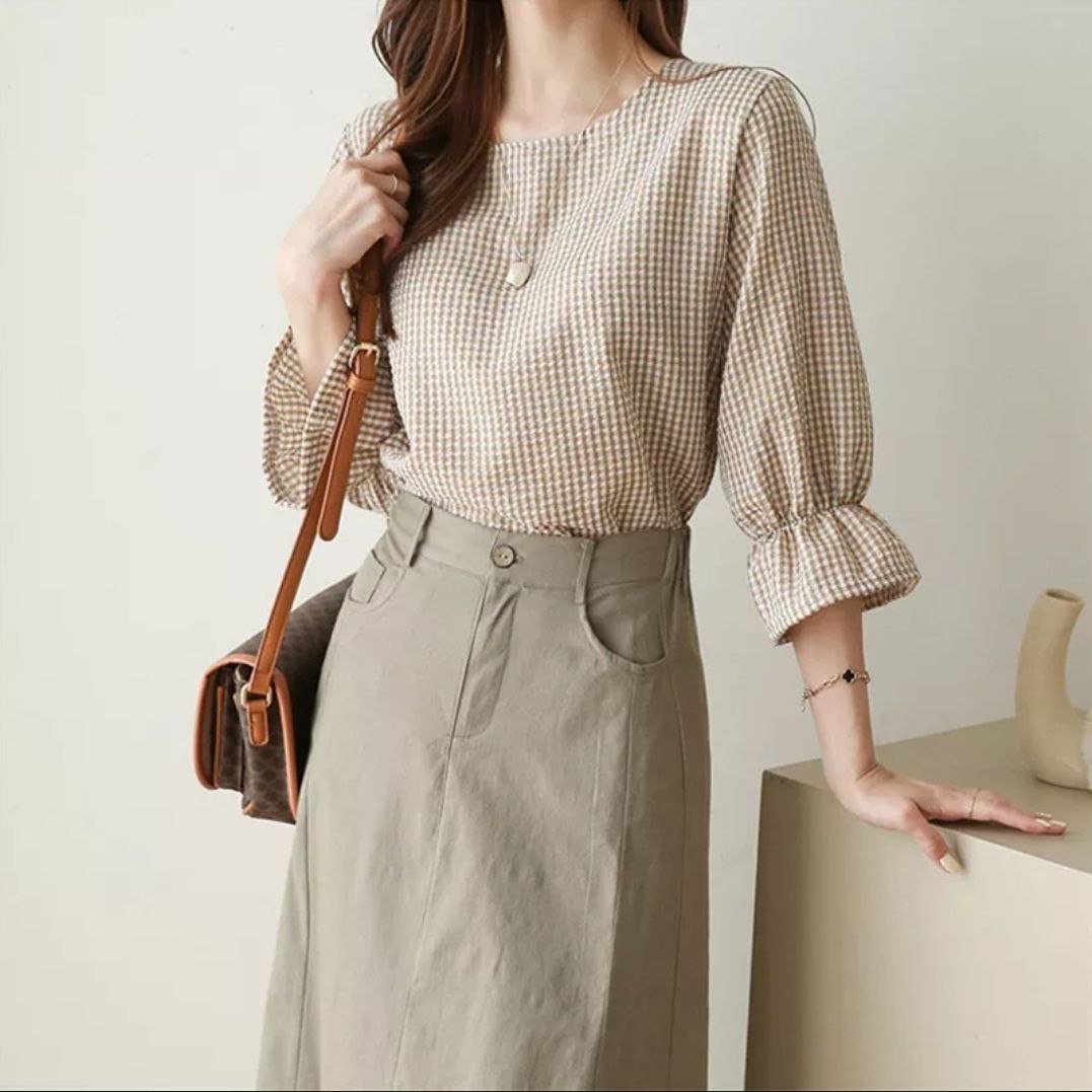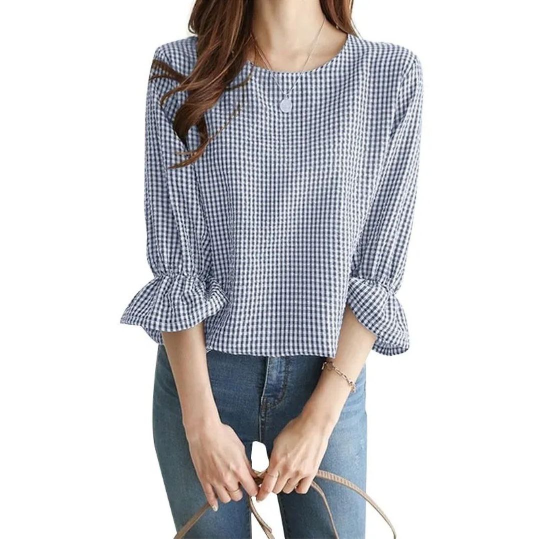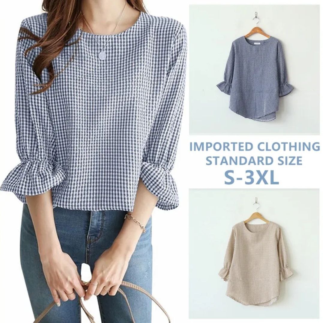 DescriptionReviews Description Product details of Korean Casual Plaid Lotus Leaf 3/4 Sleeves Round Neck Plus Size Stripes Blouse For WomenSpecifications of Korean Casual Plaid Lotus Leaf 3/4 Sleeves Round Neck Plus Size Stripes Blouse For WomenBrandNo BrandSKU3347216950_PH-17031804333PatternPlainClothing MaterialChiffonSleeve StyleRaglan SleeveCollar TypeRound-neckSize ClassPlus SizeSleeves Type3/4 SleeveOccasionCasualconditionNewFashion StyleKorean Reviews Be the first to review this item There are no reviews yet