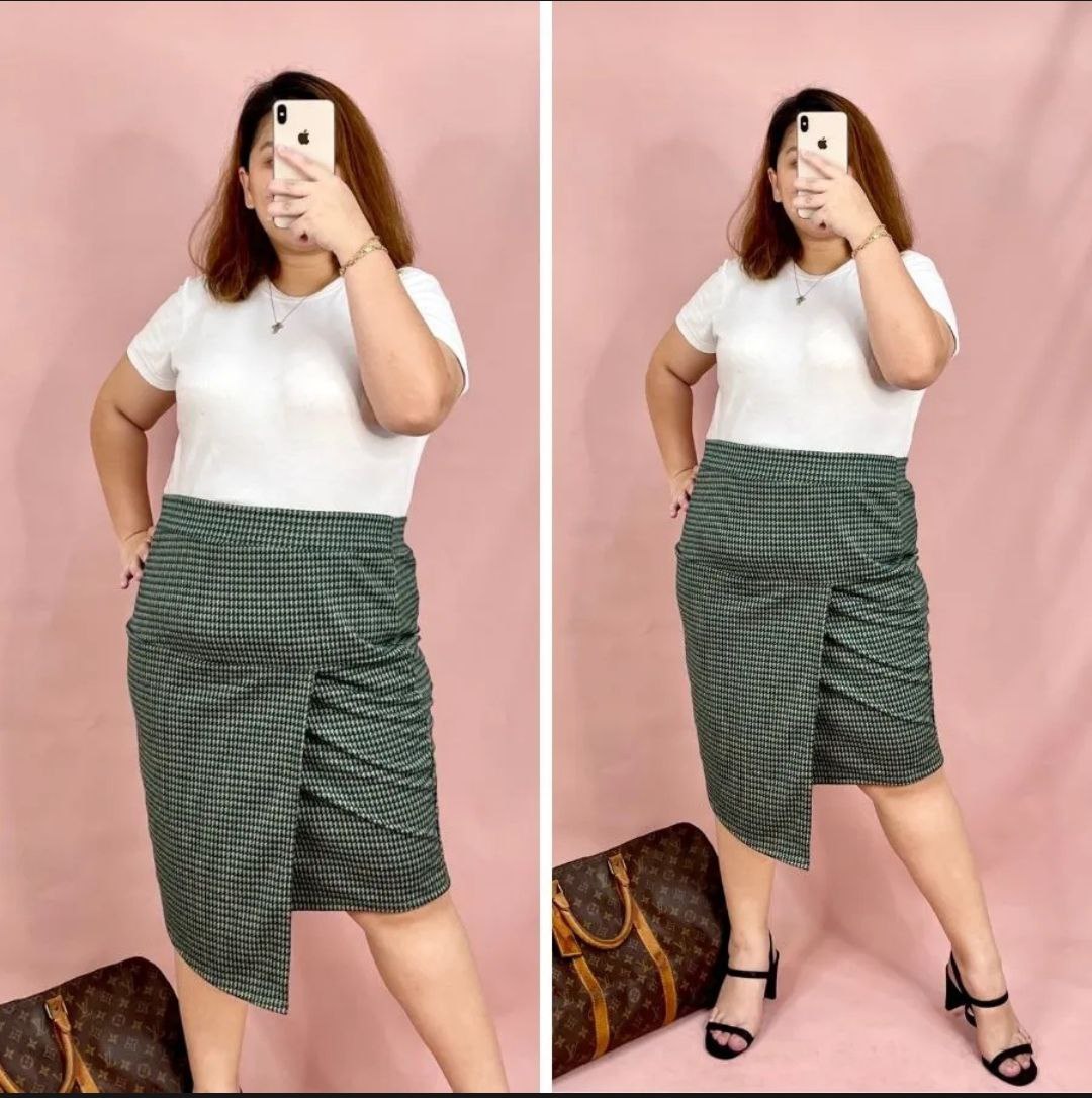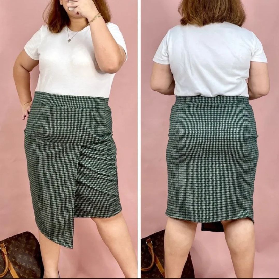 Product details of PLUS SIZE CHUBBY Women Skirt Office Formal Pencil Slit XL 2XL Interlock in Plaid Checkered BRISBANE