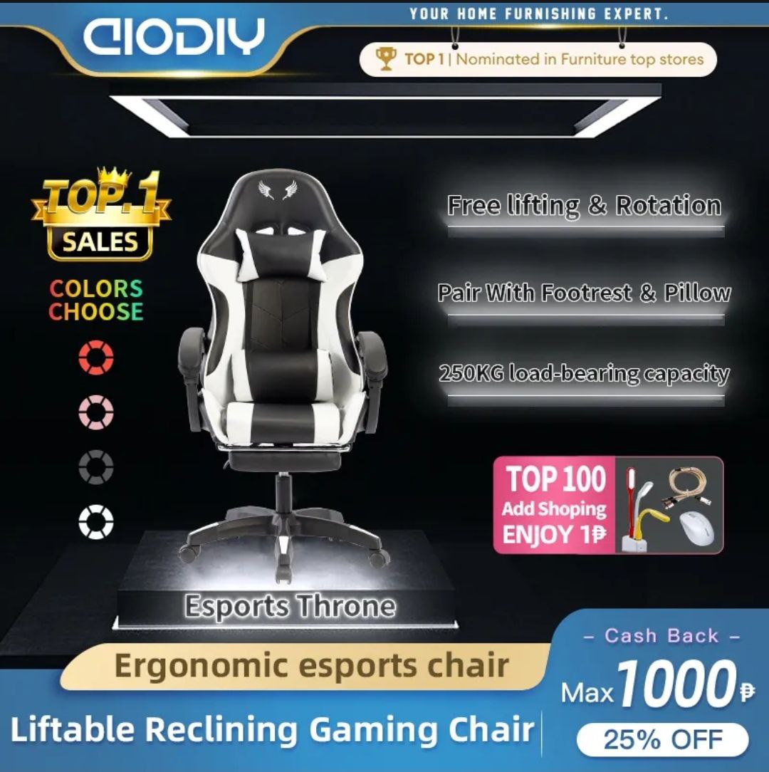 Specifications of AIODIY gaming chair computer chair freely adjustable height home office ergonomic chair with footstool and dual pillows