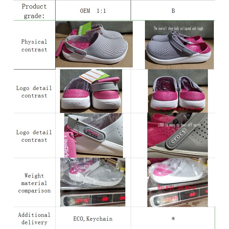 Product level: OEM 1:1 1. OEM material will restore the shape of the shoe itself even if it is squeezed, and it is not easy to deform. The B grade is directly concave, which is an obvious contrast! 2. The OEM shoe logo is made of rubber B-grade shoe logo is easier to peel off paint 3. OEM shoes have LOGO on the heel No LOGO on B-grade heel 4. The OEM material determines the appearance and weight of the shoes, the shoes are lighter and more wear-resistant, and the material is the same as the counter Grade B material is rough and heavy! OEM product manufacturers have a gift bag with: keychain, tag The picture is compared with B-level products. According to the overall shoes, logo details, packaging, quality of materials, and weight, a comparison is made. If you think price is more important, we suggest you choose B. If you care about quality and Beautiful, you can refer to our OEM! 🛍 Please put your color size add to cart order, pay attention to men's and women's size (the official standard size), we support the cash on delivery, quality inspection before shipment in good condition before packing, please rest assured purchase, the arrival of the goods if the quality problem, we can pack the freight back and forth exchange, if because size problem need to exchange, please pay the freight return back and forth, please note that the size, thank you!!! 🚗 It can usually arrive 2-4 from the time of delivery. You can check the tracking records. The specific delivery time is determined by the logistics company. Please be patient! Please fill in valid information (name, address, contact phone number) #Men's shoes #Sports shoes #Casual shoes #Hole hole shoes #Cash on delivery #COD #sandals#slippers #Beach shoes #Women's shoes
