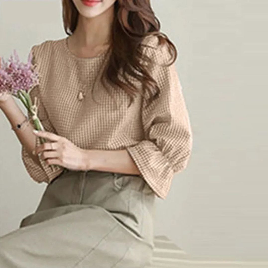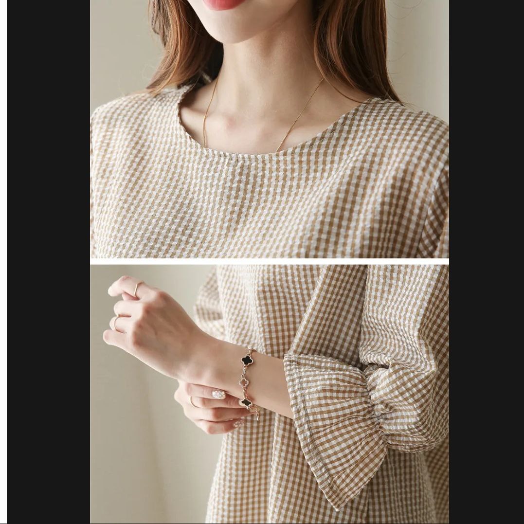DescriptionReviews Description Product details of Korean Casual Plaid Lotus Leaf 3/4 Sleeves Round Neck Plus Size Stripes Blouse For WomenSpecifications of Korean Casual Plaid Lotus Leaf 3/4 Sleeves Round Neck Plus Size Stripes Blouse For WomenBrandNo BrandSKU3347216950_PH-17031804333PatternPlainClothing MaterialChiffonSleeve StyleRaglan SleeveCollar TypeRound-neckSize ClassPlus SizeSleeves Type3/4 SleeveOccasionCasualconditionNewFashion StyleKorean Reviews Be the first to review this item There are no reviews yet