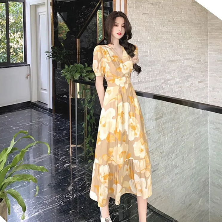 Unique Design: This women's short sleeved dress features a sexy and gentle V-neck design, vibrant floral prints, and fashionable pleated hem details, making you stand out more in the crowd.