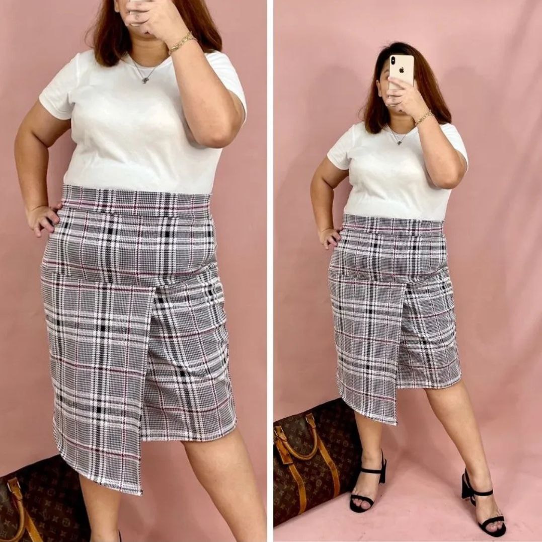 Product details of PLUS SIZE CHUBBY Women Skirt Office Formal Pencil Slit XL 2XL Interlock in Plaid Checkered BRISBANE