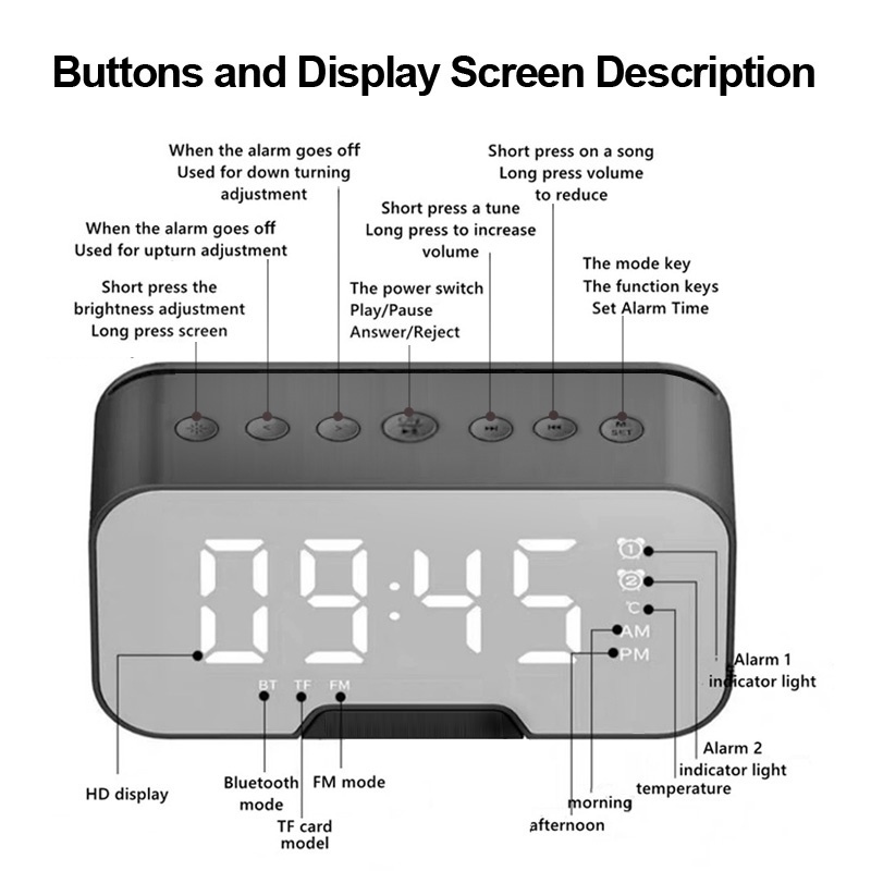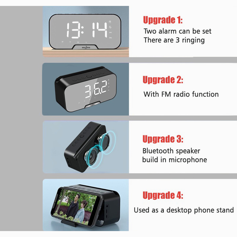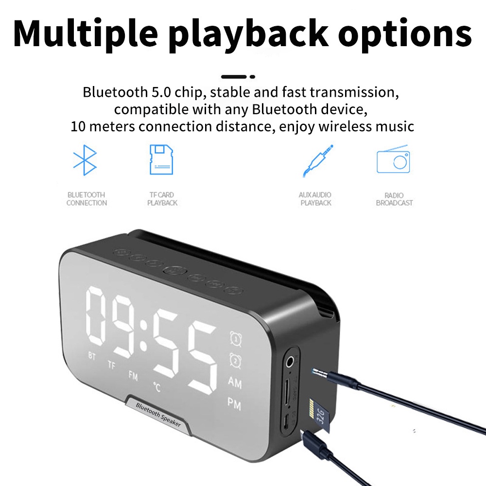Wireless bluetooth speaker with fm radio digital clock led desk digital alarm clock with speaker
